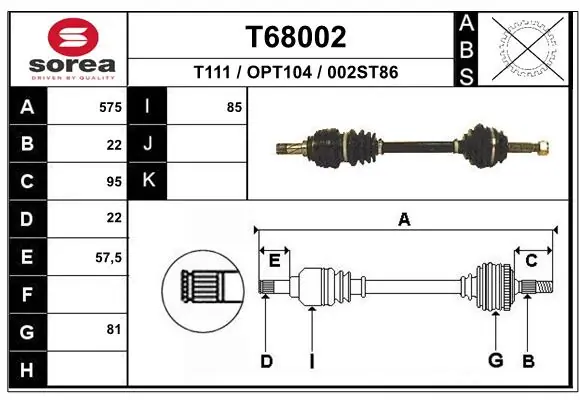 | T68002 EAI Піввісь передня ліва | 1 | 73 USD |