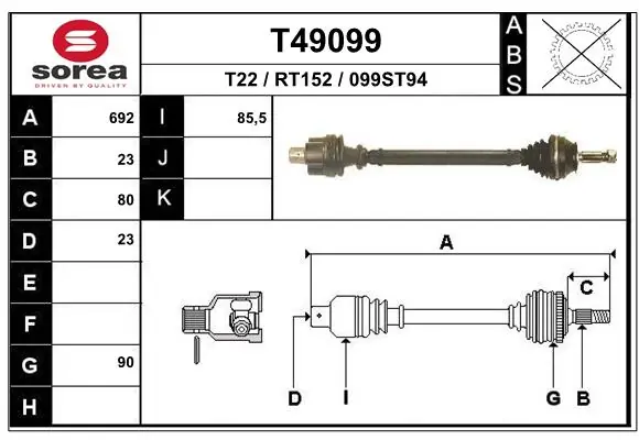 Піввісь (привід) передня стандартна комлектацiя