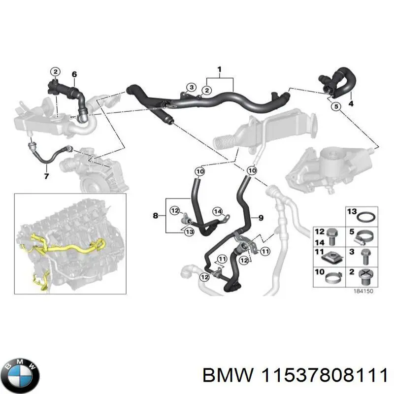 | BMW | 11537808111 | Б/В Трубка системи охолодження bmw 11 53 7 808 111 |